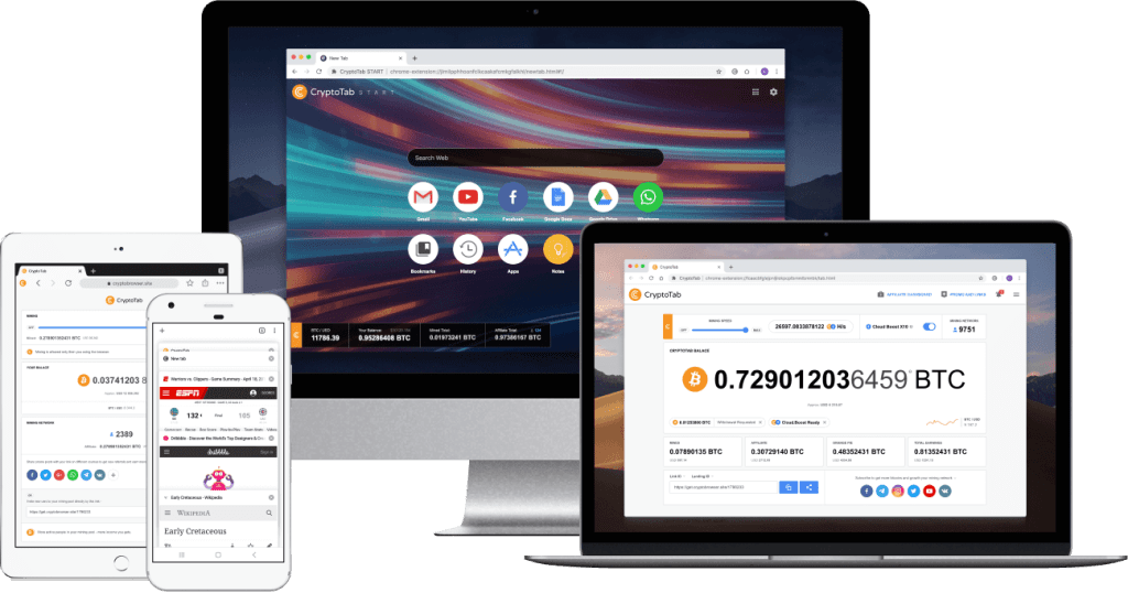 Try CryptoTab — the world’s first browser with mining features. Earn bitcoin without looking up from watching videos, chatting, or gaming online. Join the community of more than 10 million users all over the world already enjoying CryptoTab Browser.