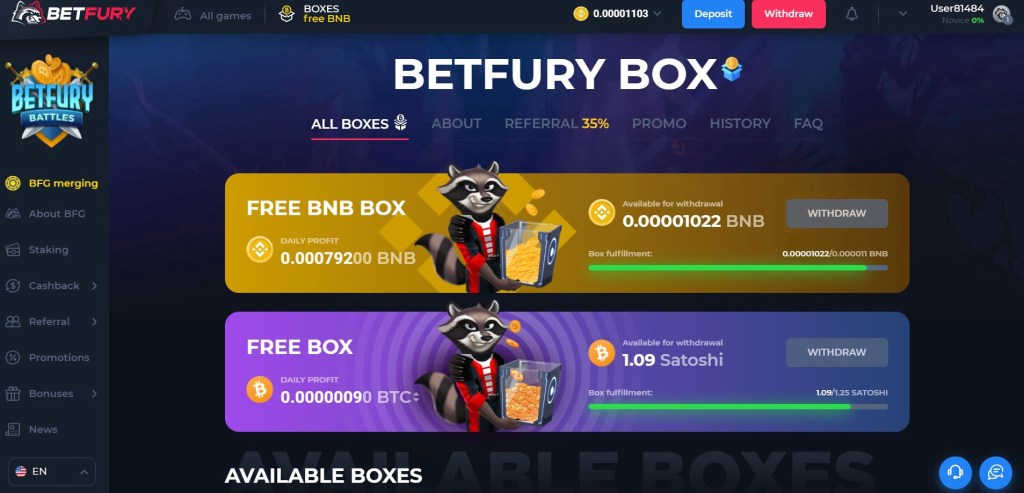 🎁💰 Want to earn free crypto ? Well, BetFury offers unique opportunity to its new users to Get free BTC/ BNB with BetFury BOX 🎁💰 ! And start playing games with your free claimed BTC/BNB. Enjoy the easy way to earn cryptocurrency without adding funds and additional knowledge! Betfury introduces a unique tool that gives everyone the opportunity to earn real cryptocurrency.