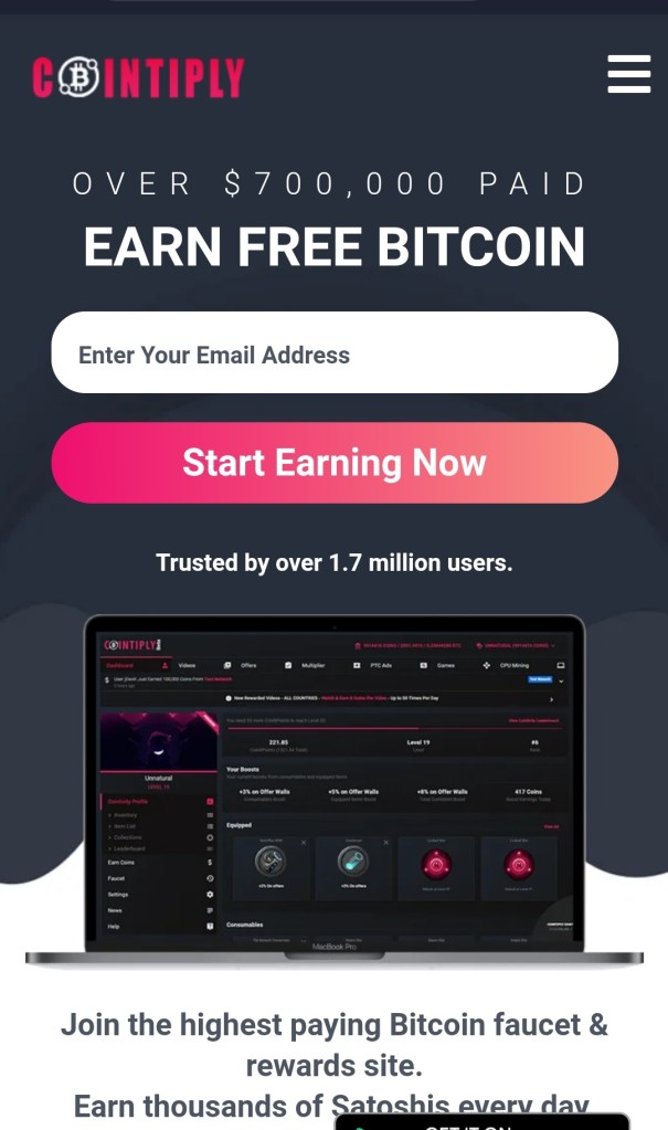 ππ° CryptoTab: Legit & Free bitcoin mining network & daily payouts to your bitcoin wallet. You can make upto 1BTC monthly if you really focus and work in building your 1st Level team in initial days and your team will start growing into 10 levels without your knowledge that is the beauty of this network based mining site.